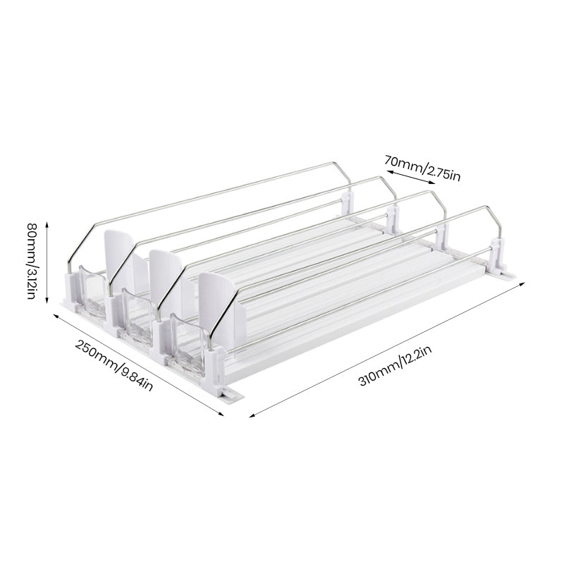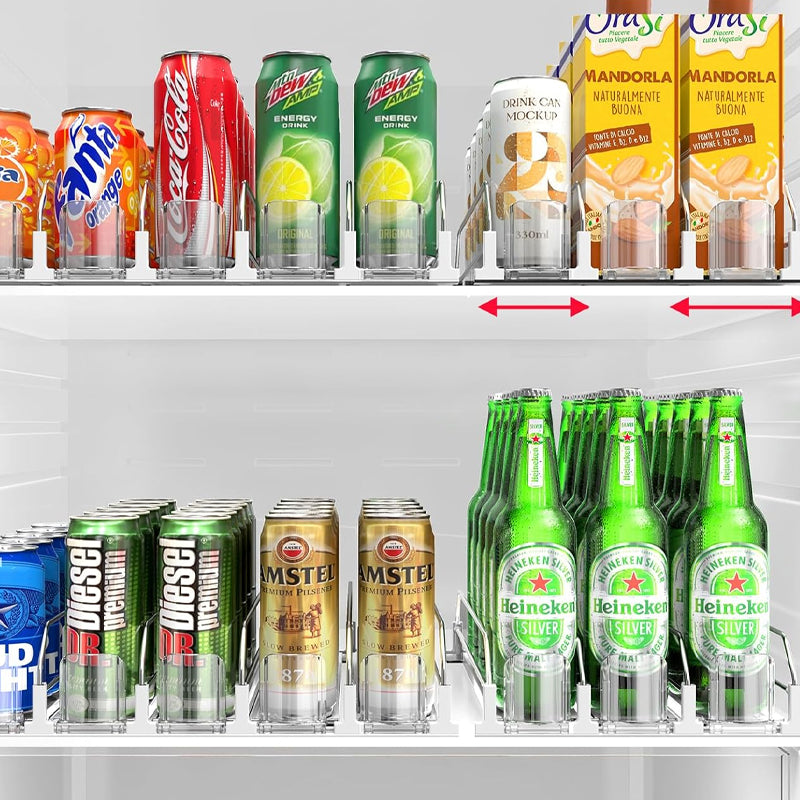 SPAREN SIE PLATZ: Praktisches Design, das den Platz in überfüllten Kühlschränken, Schränken und Vorratskammern maximiert. Dieser Getränke-Organisator kann verwendet werden, um eine Vielzahl von Dosen oder Flaschen zu schieben, wie Cola, Soda, Bier, etc. Bringen Sie Ordnung in Ihren Kühlschrank, Gefrierschrank, unordentliche Arbeitsflächen, Einzelhandelsgeschäfte und Supermärkte.