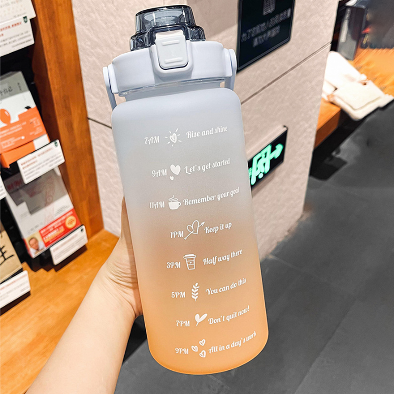 Einzigartiges Design mit Zeitfunktion: Wir empfehlen, das Wasser bis zur Markierung "7 AM" aufzufüllen, die eine Kapazität von 64 Unzen hat. Unsere Wasserflasche hilft Ihnen, den ganzen Tag über hydratisiert zu bleiben.