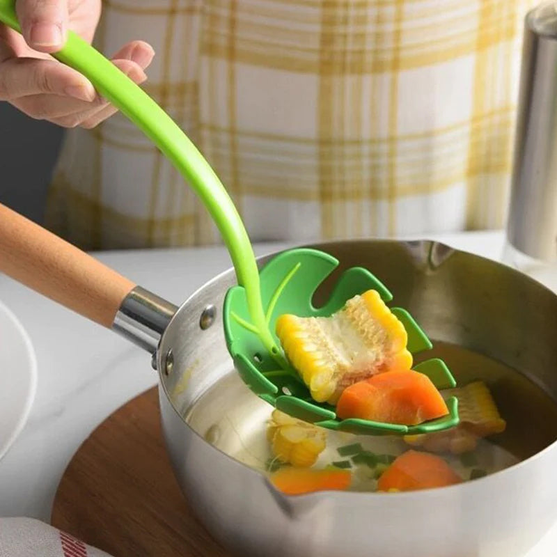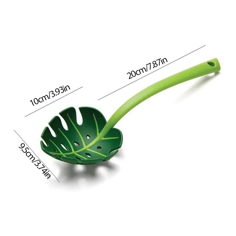 • 5. Kreatives Design: Kreatives und neuartiges grünes Blattdesign, geschlitzter Küchenlöffel, bringt mehr Grün und Spaß in Ihr Zuhause.