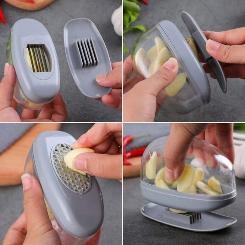Dieses Produkt liegt angenehm in der Hand und lässt sich leicht drücken. Die Knoblauchscheiben werden automatisch in der Aufbewahrungsbox aufbewahrt, um Ihre Hände sauber zu halten und Gerüche zu reduzieren.