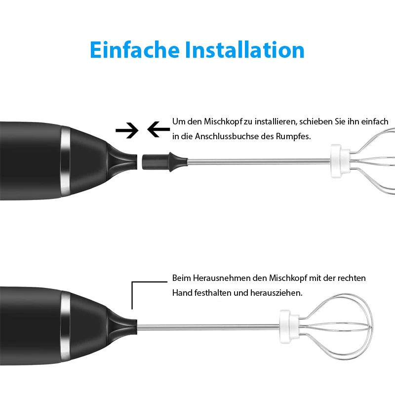 - Tauchen Sie den Milchaufschäumer nicht in Wasser. Reinigen Sie nur den Teil des Mischkopfes.
