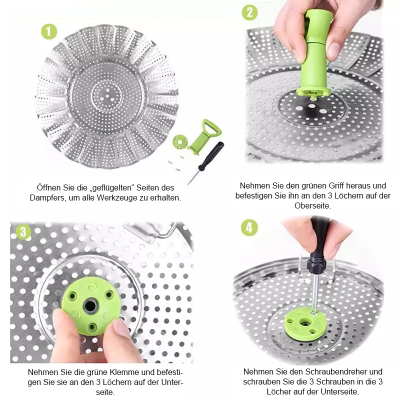 • 💚 Erweiterbar und zusammenklappbar: Es dehnt sich auf 9 Zoll aus, sobald die Blütenblätter ausgestreckt sind. Durch die ein- und ausklappbaren "Flügel" passt der Dampfgarer in verschiedene Topf- / Pfannengrößen oder Schnellkochtöpfe und verwandelt jede Pfanne in einen Dampfgarer. Öffnet sich wie eine Seerose und lässt sich kompakt zusammenfalten, um Speicherplatz zu sparen, im Gegensatz zu sperrigen Bambusdämpfern.
