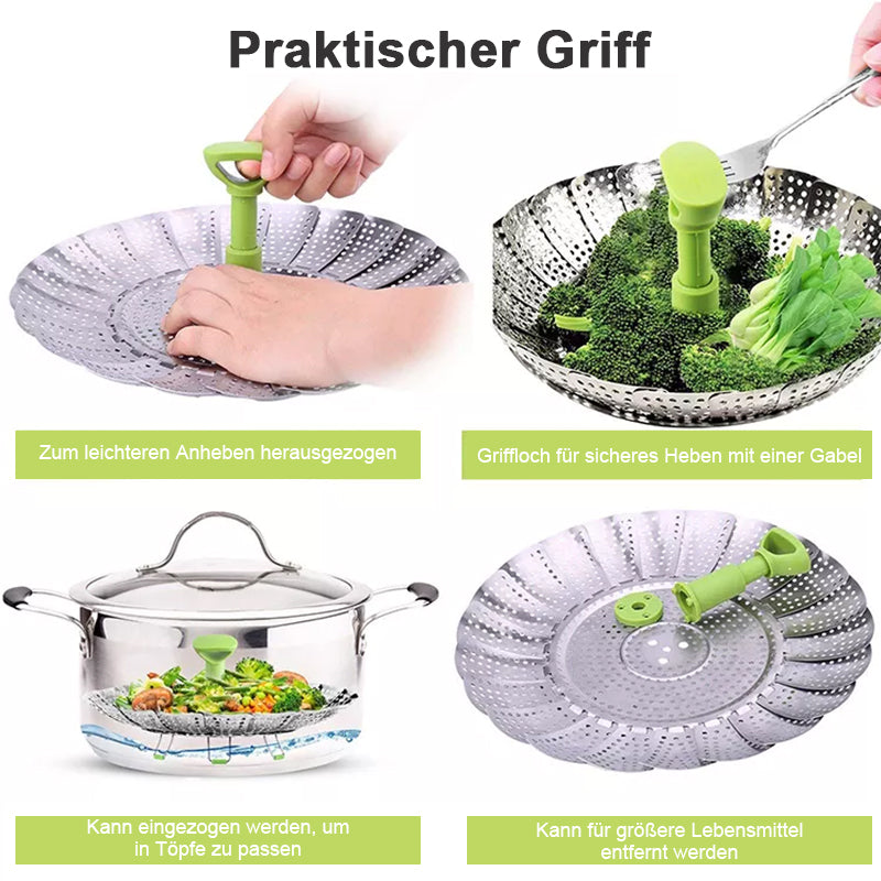 • 💚 Multifunktional: Kann nicht nur als Dampfgarkorb verwendet werden, sondern kann auch als Sieb oder Obstbehälter verwendet werden. Sie können es auch verwenden, um zusätzliches Wasser zu filtern, wenn Sie einen Salat zubereiten. Von vielbeschäftigten Müttern über College-Studenten bis hin zu kulinarischen Künstlern ist dieses Produkt auf jeden Fall ein Muss für jeden, der mehr Gesundheit in seine Ernährung bringen möchte.