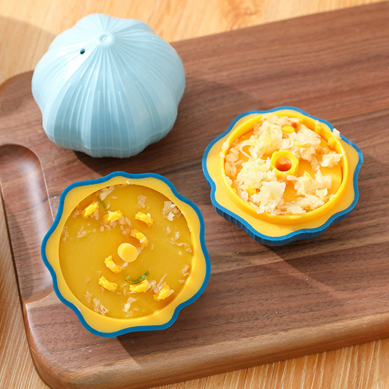 Hochwertiges, humanisiertes Design: Die Kapazität kann den täglichen Bedarf der meisten Familien decken und Platz sparen. Entfernen Sie schnell den geriebenen Knoblauch, indem Sie auf die Unterseite drücken.