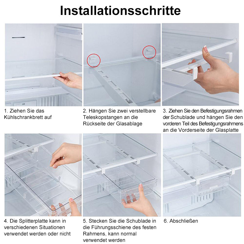 Vergrößern Sie den Stauraum: Schubladenartiges Design, einfacher Zugang zu Lebensmitteln, effektiver vergrößerter Platz im Kühlschrank.