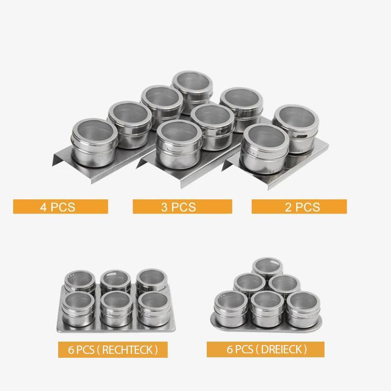 Magnetische Gewürzdosen-Kanister lassen sich an jedem flachen Metall befestigen und bieten schnellen Zugriff auf Ihre Gewürze. Besonders nützlich für kleine Küchen, in denen der Ladentisch eine wichtige Rolle spielt.