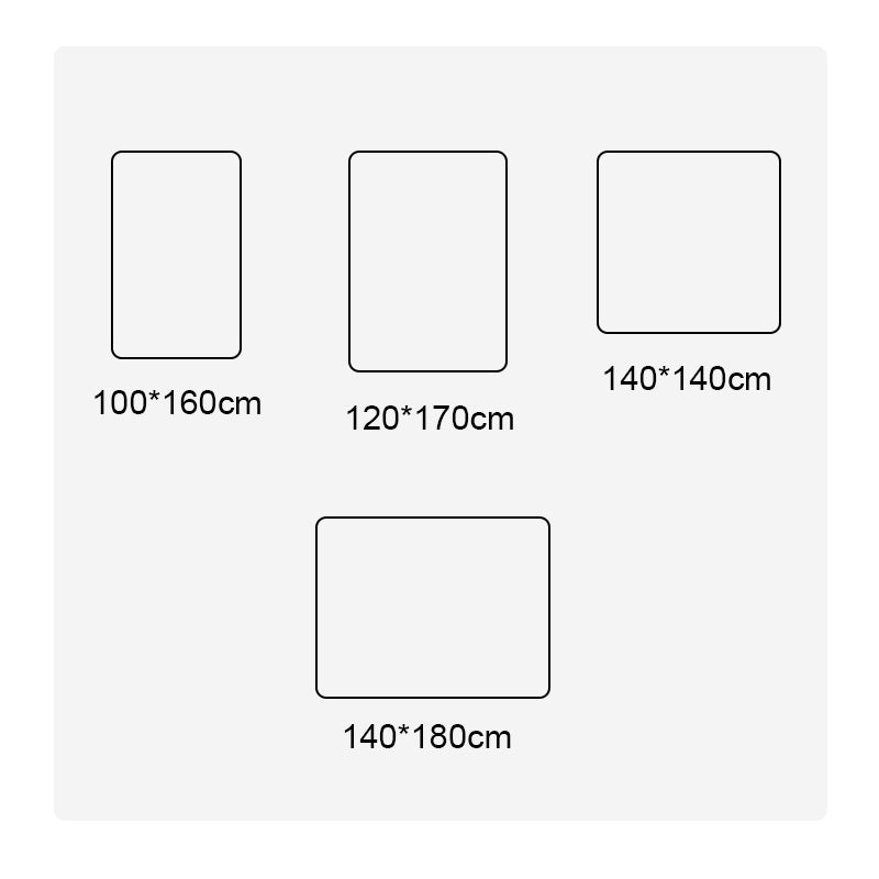 • Größe: 100*160cm / 120*170cm / 140*140 cm / 140*180 cm