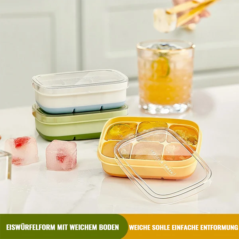 • Lebensmittelsicherheitsmaterial: Unsere Eiswürfelschalen bestehen aus BPA-freiem, hochwertigem Kunststoff, der sicher, langlebig und wiederverwendbar ist.