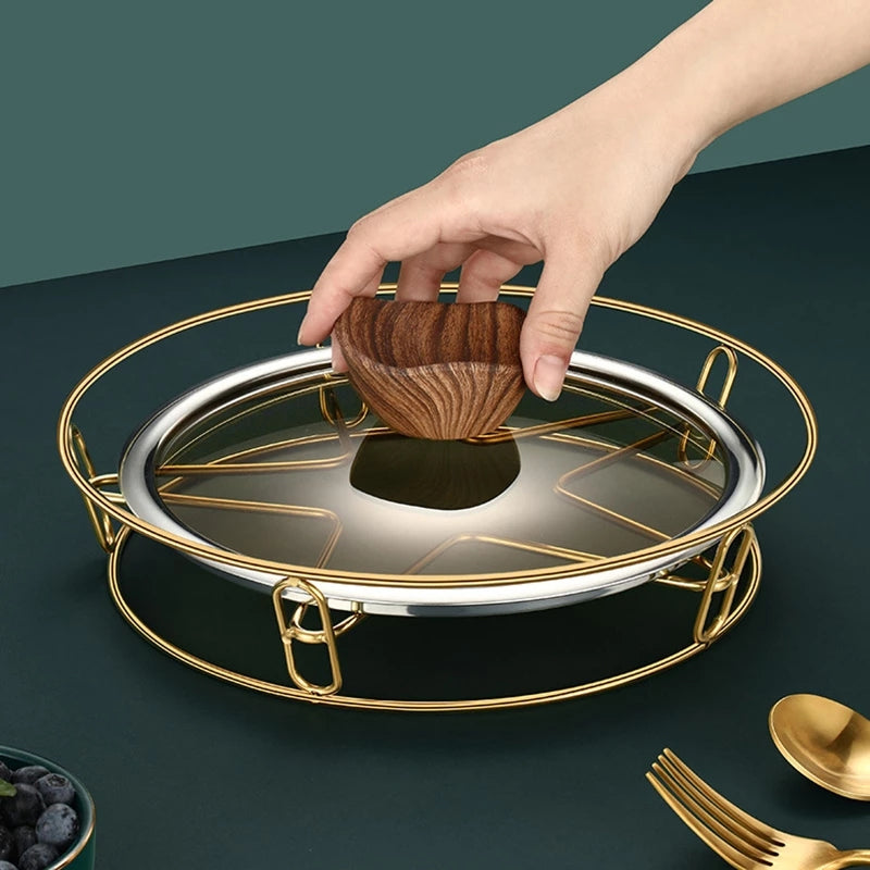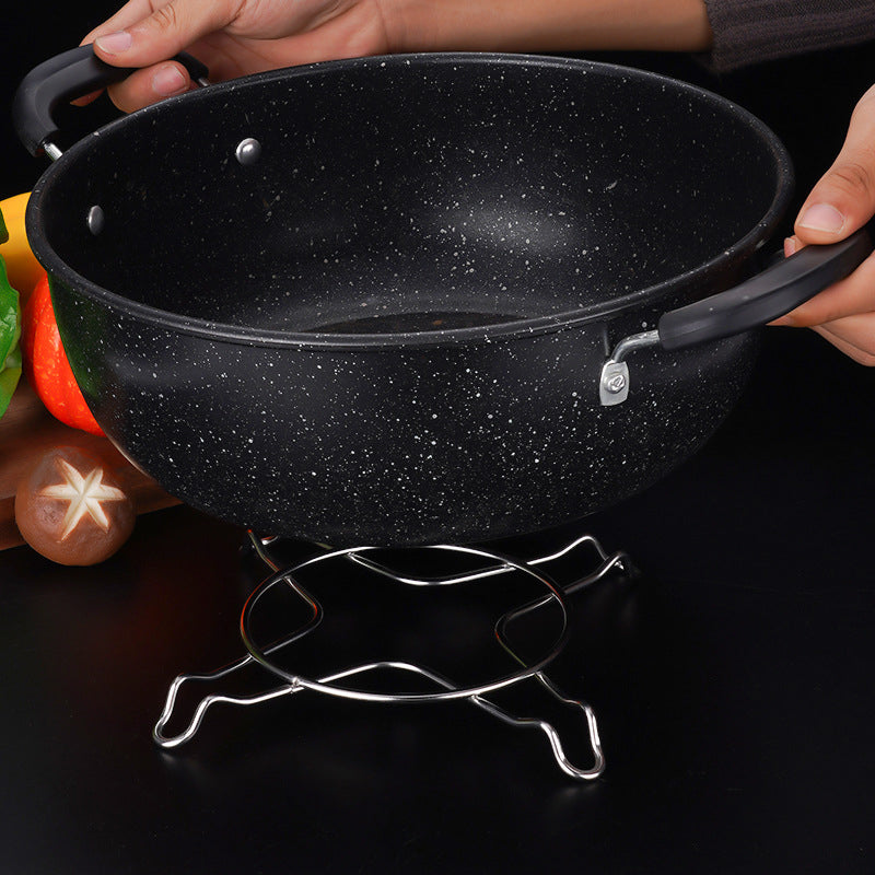 Dieses Produkt besteht aus verdicktem Edelstahl mit starker Tragfähigkeit. Hält allen Töpfen und Pfannen mit Essen und Suppe stand. Robust und für die Ewigkeit gebaut.