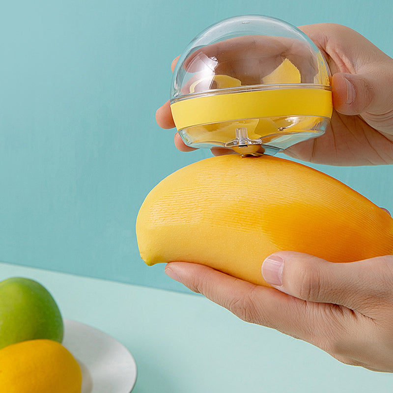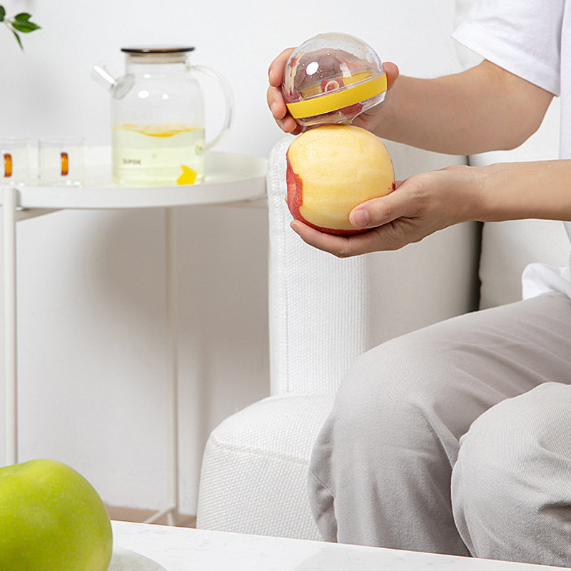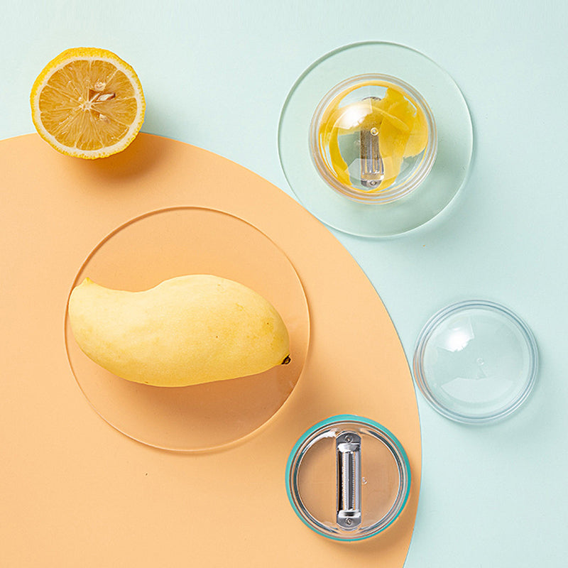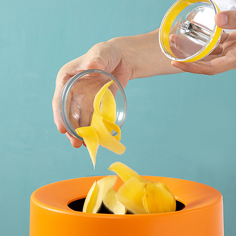 Innovatives Design: Dieser Schäler unterscheidet sich von herkömmlichen Schälern. Der Behälter hilft beim Auffangen der beim Schälvorgang anfallenden Schalen. Das runde Design sorgt für ein angenehmes Tragegefühl. Drehen und öffnen Sie den Deckel, um die Fruchtschale leicht auszugießen.