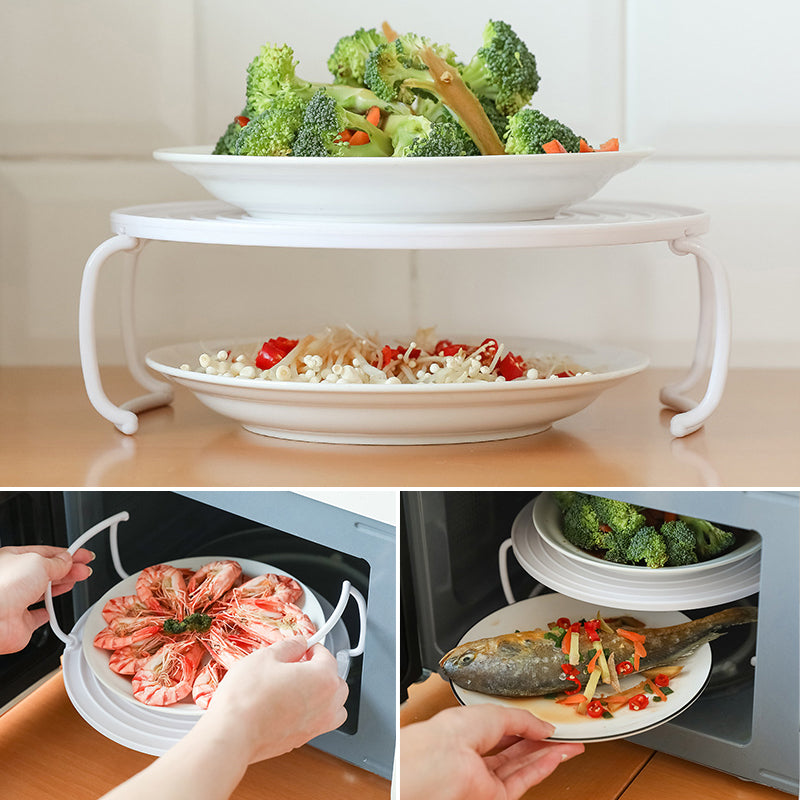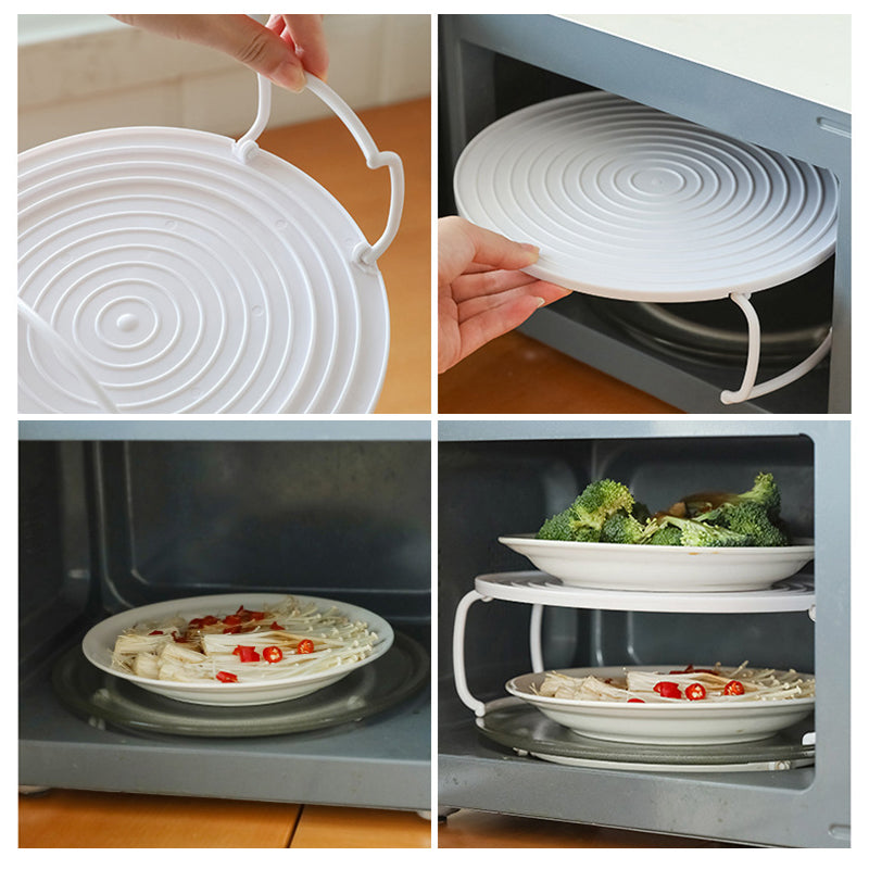 Das Mikrowellengestell macht die innere Schicht des Mikrowellenherds zu zwei Schichten mit einer Temperaturbeständigkeit von 120°C. Es löst das Problem, zwei Dinge gleichzeitig zu erhitzen, was energie- und zeitsparend ist.