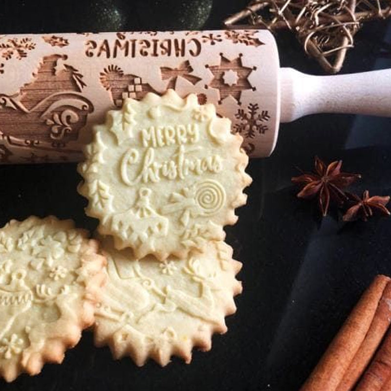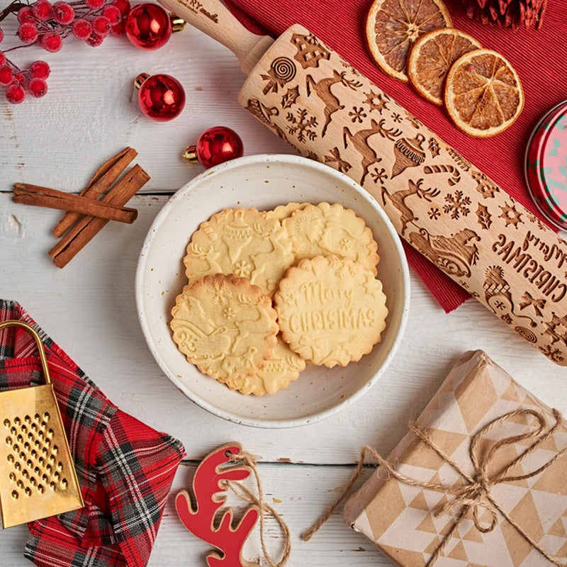 • 1 * Nudelholz mit Weihnachtsmotiven