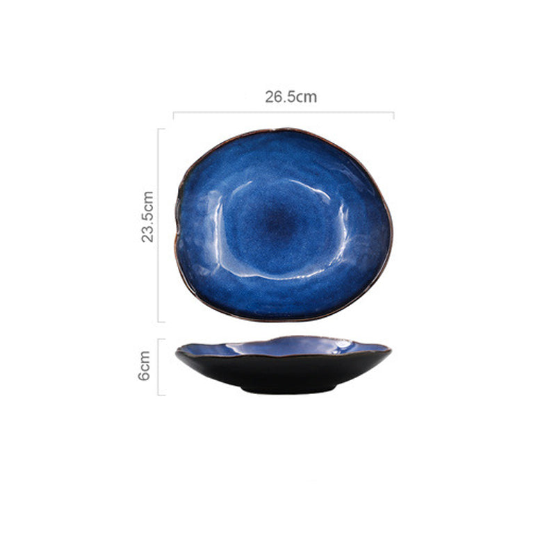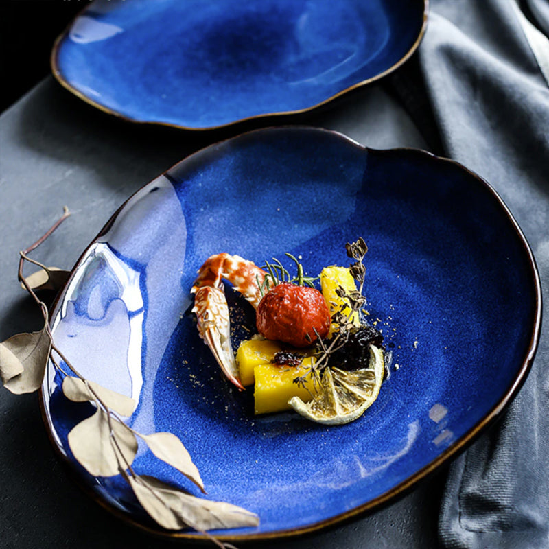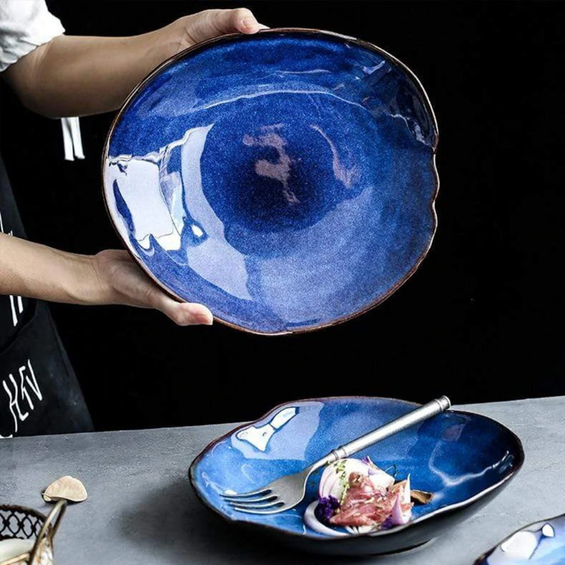 Unsere dunkelblauen Teller verfügen über feuergehärtete Keramik und eine attraktive glänzende Oberfläche, jede mit einer einzigartigen Form und einem einzigartigen Charakter.
