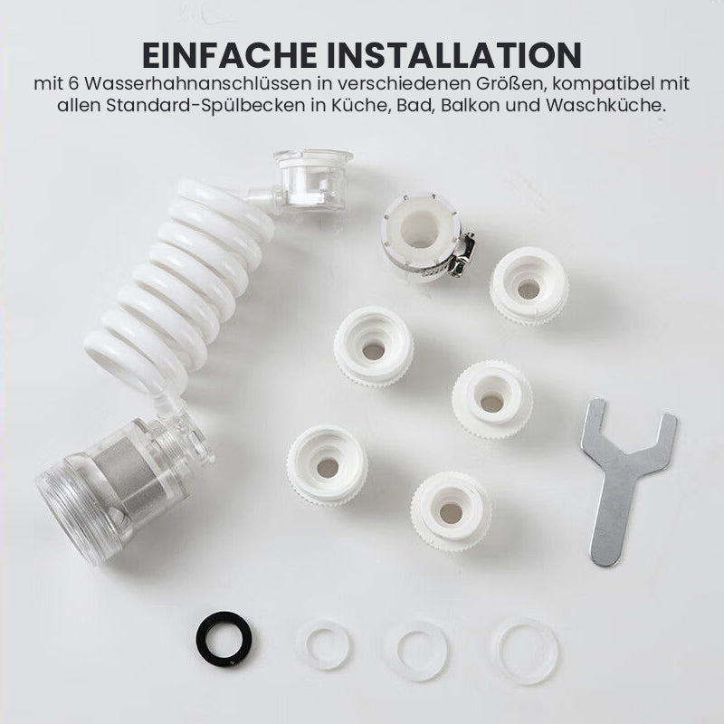 EINFACHE INSTALLATION: Entwickelt für eine einfache Installation und mit 6 Wasserhahnanschlüssen in verschiedenen Größen, kompatibel mit allen Standard-Spülbecken in Küche, Bad, Balkon und Waschküche.