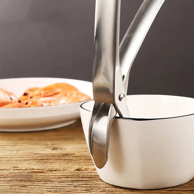 Diese Geschirrzange ist aus hochwertigem Edelstahl 304 gefertigt, kann Oberflächenrost verhindern und die Rolle des Antioxidans spielen.