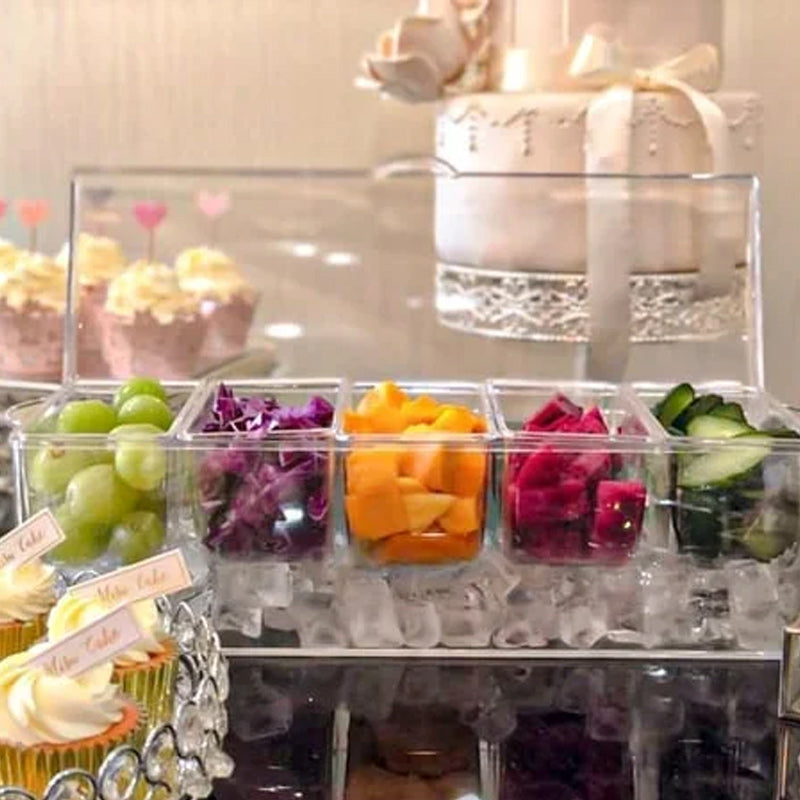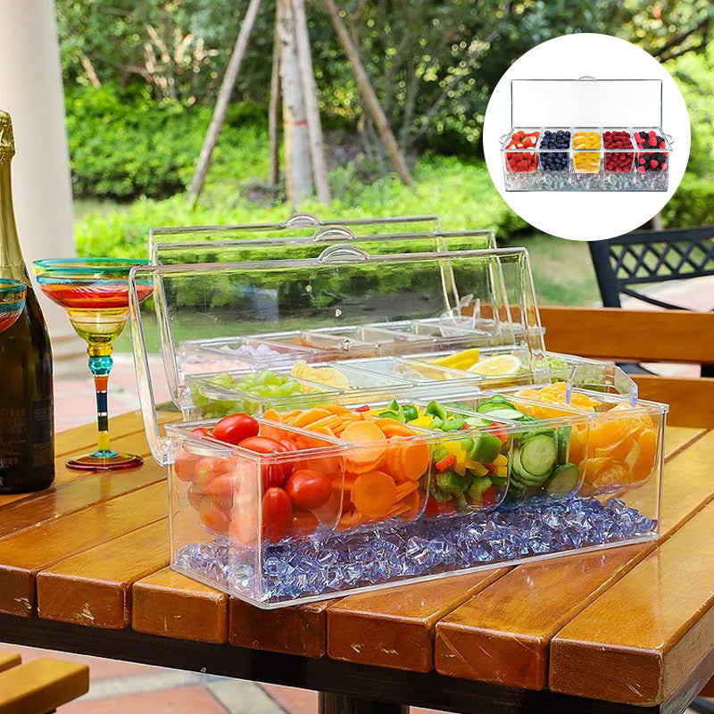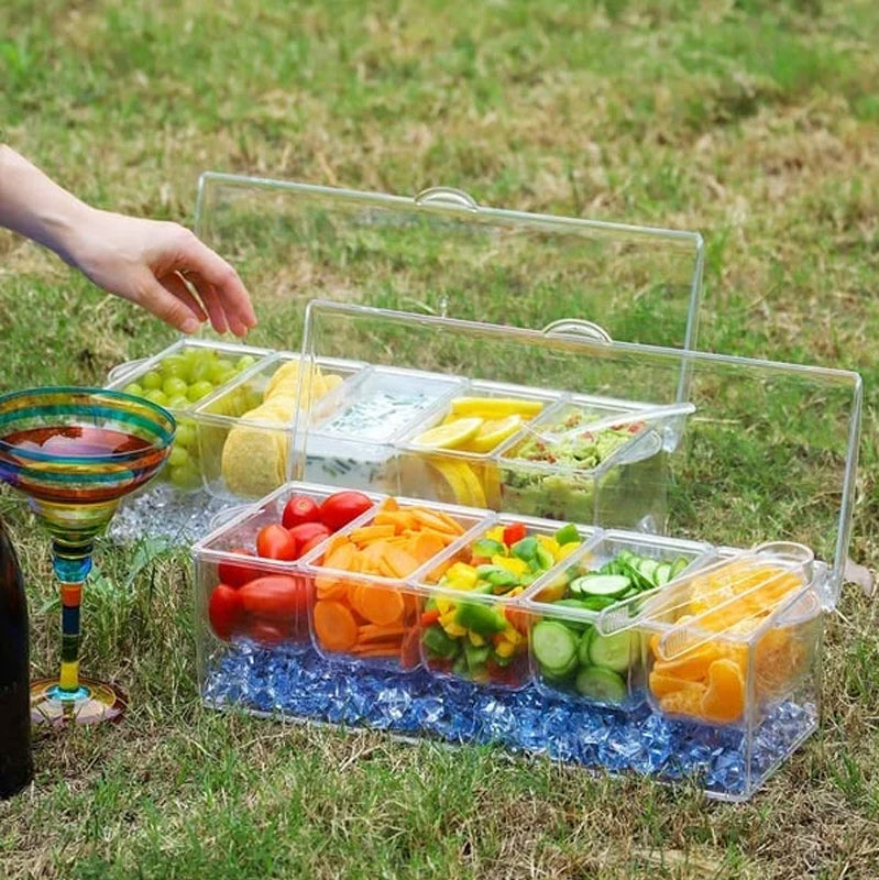 Herausnehmbar und durchsichtig: Dank der herausnehmbaren Fächer können Sie Ihre Gewürze leicht nachfüllen. Die transparenten Fächer des Chilled Condiment Servers helfen Ihnen, die Mängel von Eis und Lebensmitteln jederzeit zu entdecken.