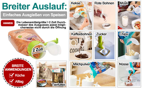 Kein Chaos mehr durch das Eingießen von verpackten Lebensmitteln und Mehl!