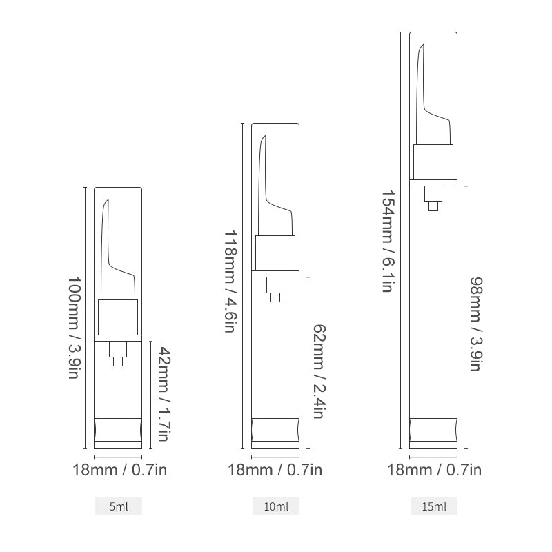 Fassungsvermögen: 5 ml, 10 ml, 15 ml. Durchmesser 18,5 mm. Klein und tragbar, bequem zu bedienen und zu tragen, ideal für Reisen, Geschäftsreisen und den Alltag.