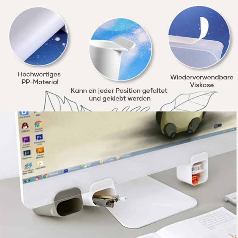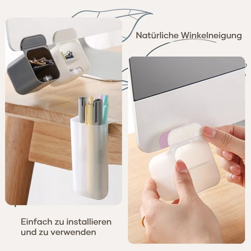 Der Stifthalter bietet 3 m doppelseitiges Klebeband. Dieses hochwertige Klebeband ist speziell hergestellt, ohne Spuren zu hinterlassen, sodass Sie den Stifthalter jederzeit bewegen können