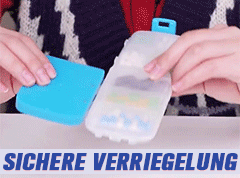 Die Pillendose hat 8 separate Fächer, die Ihre täglichen Vitamine, Nahrungsergänzungsmittel und verschreibungspflichtigen Medikamente aufnehmen können! Jeder Teil ist fest verschlossen und hält alle Pillen an Ort und Stelle. Sie müssen sich keine Sorgen um das Mischen von Medikamenten machen!