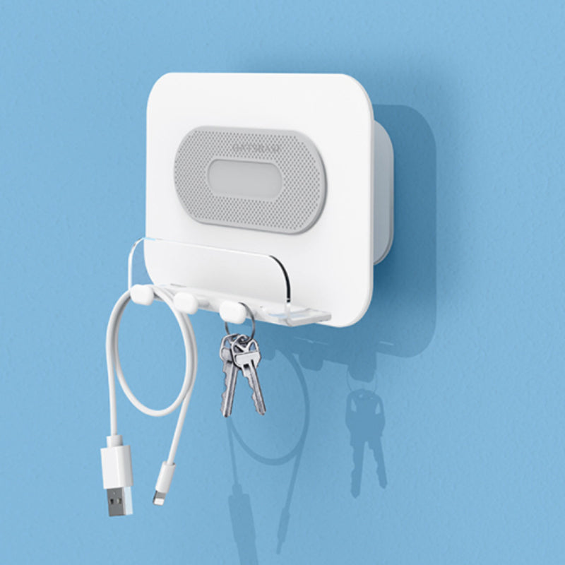 Es hat ein rutschfestes Kissen, das das Telefon sichert, auch wenn es vibriert. Die Aufbewahrungshaken verfügen über ein multifunktionales Design, in dem Sie Ihre Schlüssel, Ihr Ladegerät, Ihre Brille usw. aufbewahren können. Und die transparente Schallwand zur Visualisierung des gesamten Gerätebildschirms.