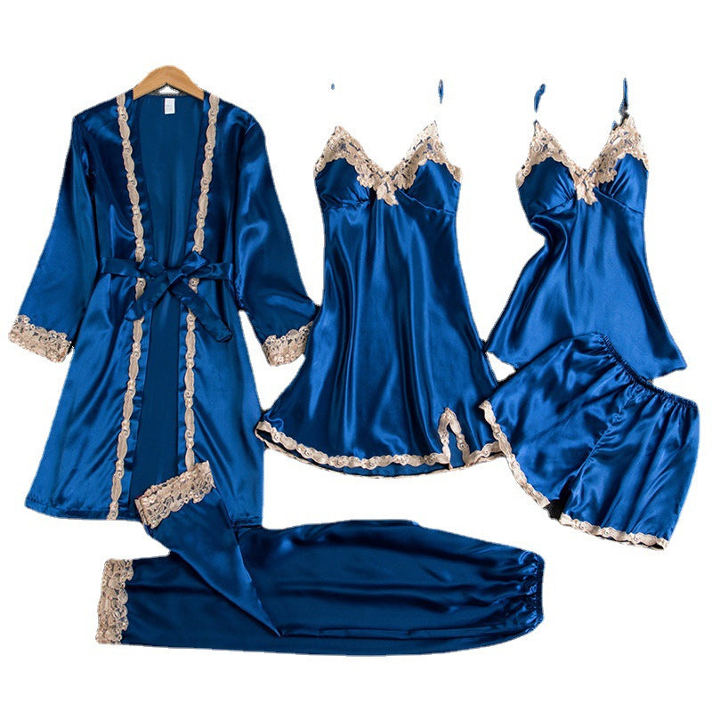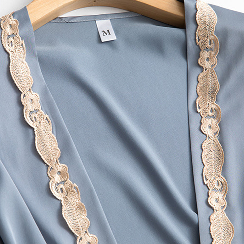 Eisseide-Pyjamas sind ein unverzichtbares Kleidungsstück für Mädchen. Glatte und zarte Seidenstoffe scheinen schöne Gesichter und kurvenreiche Frauen zu ergänzen.