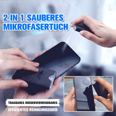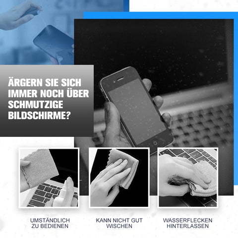 Verabschieden Sie sich von Ölflecken, Fingerabdrücken, Bakterien und Staub mit dem 2-in-1 Bildschirmreiniger & Mikrofasertuch.