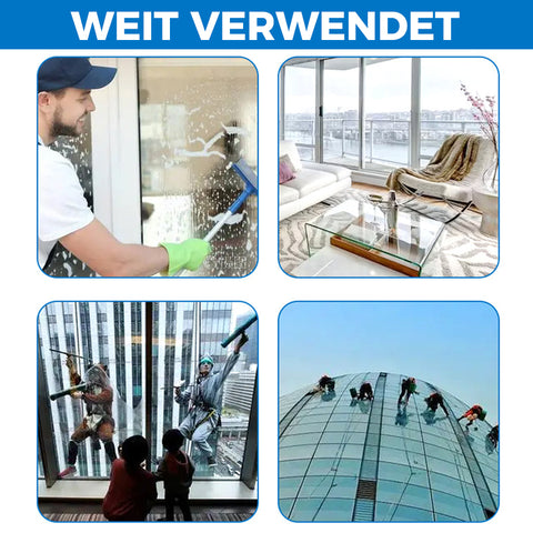 Rakel-Fensterreiniger: Spezielle Gummi-Rakel-Kunstwerke sorgen für streifen- und quietschfreies Arbeiten. Glänzende Fenster erleichtern die Reinigung.