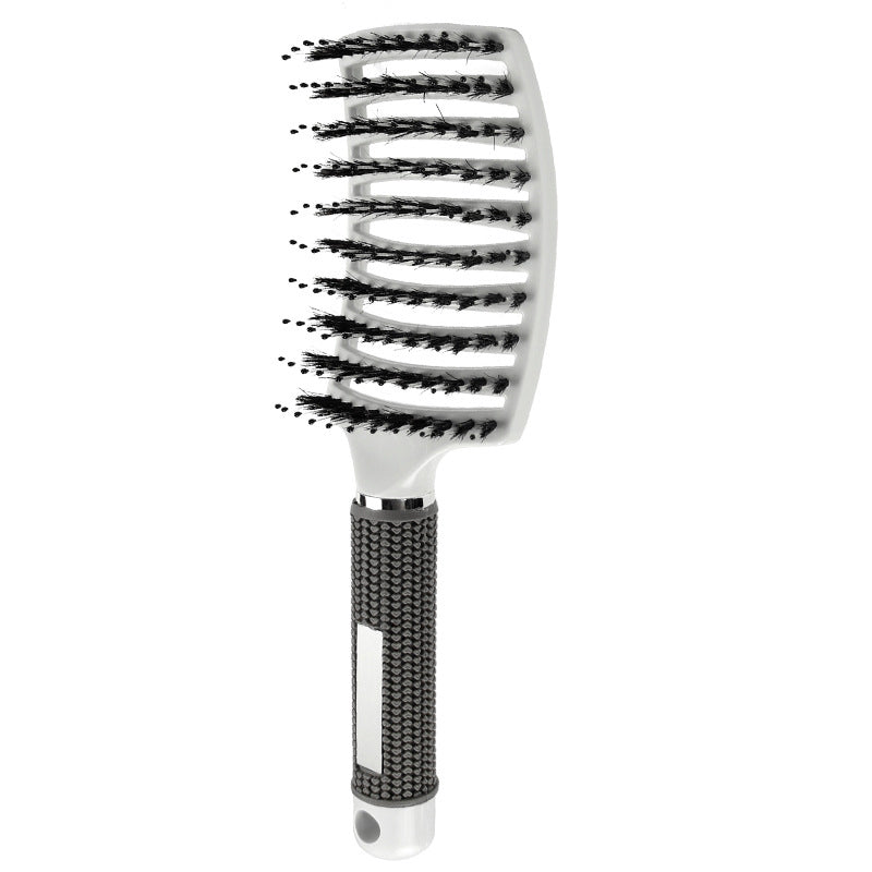 Nehmen Sie Verwicklungen auf: Das Ausbürsten von Haaren, die voller Verwicklungen sind, kann ziemlich schmerzhaft sein! Unser innovative Kamm mit kombinierten Nylonspitzen und Wildschweinborsten gleitet jedoch leicht durch verwirrtes und nasses Haar und macht Ihre Strähnen weich und handlich.