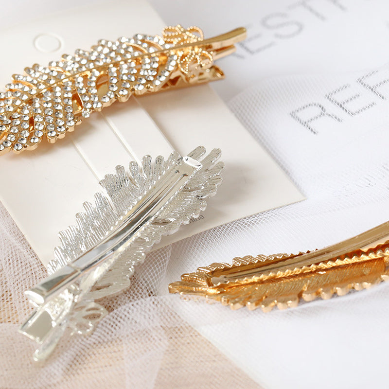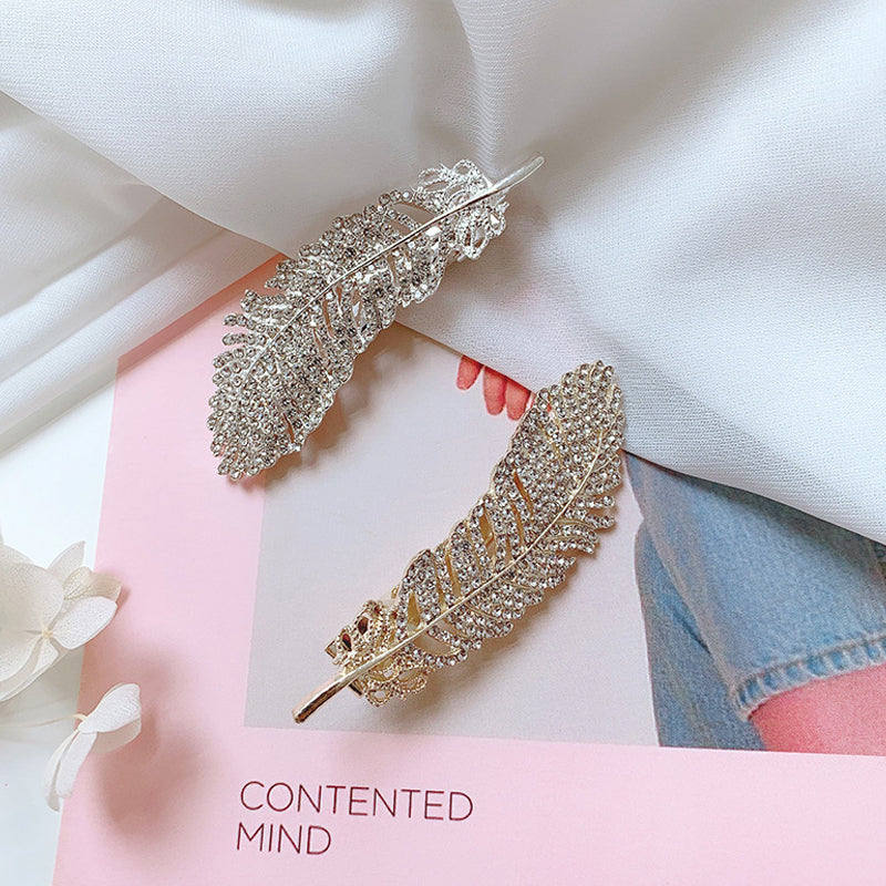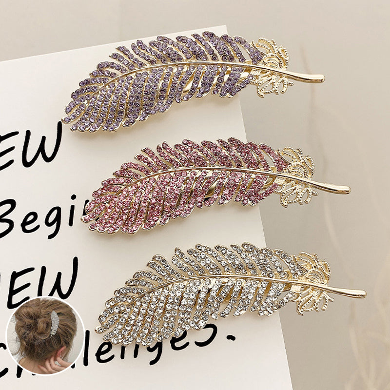 Wunderschöner 3D Diamant Feder Haarspange - Glänzende Haarspange in Form 🎗️einer Feder.🎗️