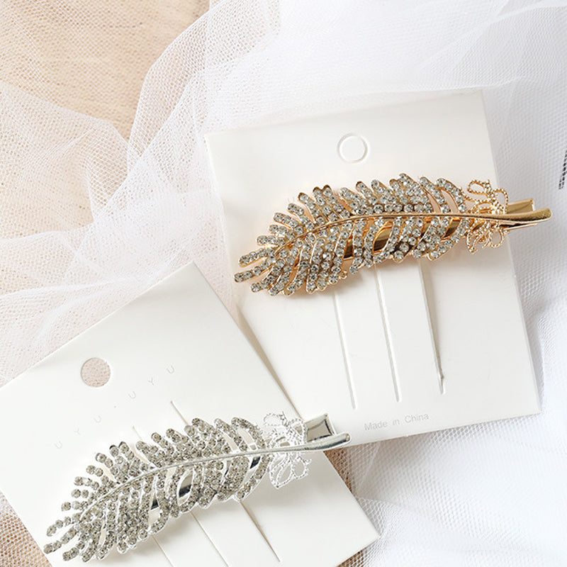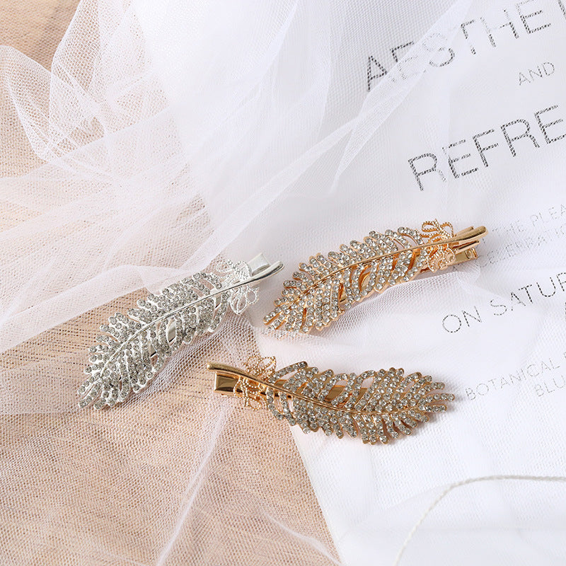• Funkelnde Strasssteine, die im Licht und Sonnenlicht funkeln. Federausschnitt graviertes Design, wie echte Federn. Diese Diamant Feder Haarspange ist eine Kombination aus Tradition und Moderne, die charmanter, wunderschöner, modischer und süßer ist.