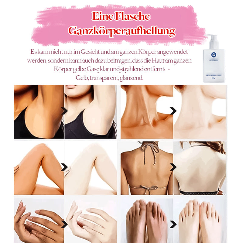 Dieser aufhellende Reiniger hinterlässt ein sauberes, weiches und feuchtigkeitsspendendes Hautgefühl und spendet trockener Haut während der Reinigung Feuchtigkeit.