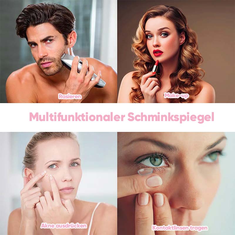 - Die 1-fache Seite ist perfekt für einen Gesamtblick, während die 3-fache Vergrößerungsseite eine genauere Untersuchung Ihres Gesichts für detailliertes Schminken, Rasieren oder Haarekämmen ermöglicht.