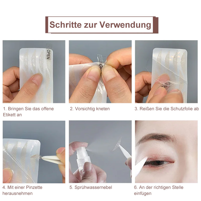• 🌟Einfache Anwendung: Sprühen Sie einfach Wasser, um sie zu kleben, und kleben Sie dann an Ihrer Augenfalte.