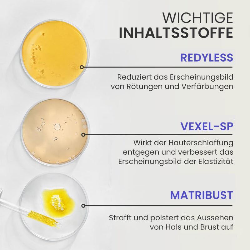 Aufhellung des Hauttons: Die Halscreme verbessert den ungleichmäßigen Hautton am Hals und lässt ihn heller und gleichmäßiger erscheinen.