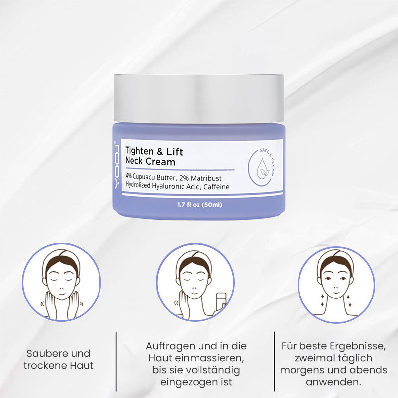 Reduziert Fältchen: Halscremes enthalten spezielle Inhaltsstoffe, die die Elastizität und Festigkeit der Haut fördern und so das Auftreten von Fältchen reduzieren.