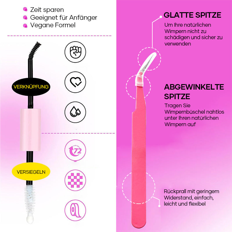 Einfache Anwendung: Wimpernset Unser doppelseitiger Wimpernkleber und -versiegeler verfügt über einen kompakten Spiralbürstenkopf, der den Kleber einfacher und gleichmäßiger auf die Wimpern aufträgt. Verwenden Sie dann die Tools, um Ihr Lieblings-Augen-Make-up zu kreieren.