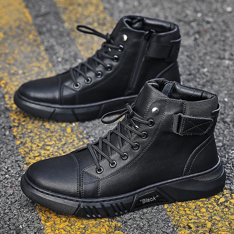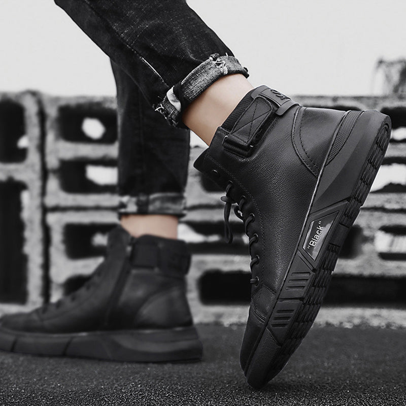 Paket: 1 Paar modische lässige schwarze Lederschuhe