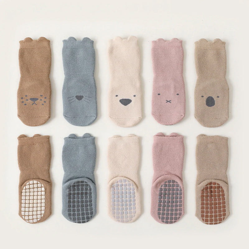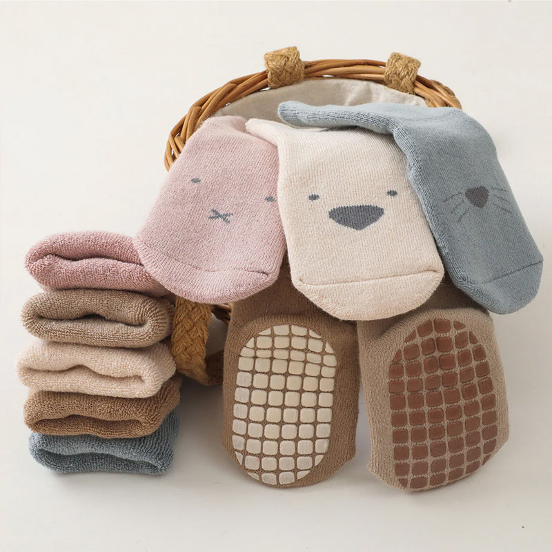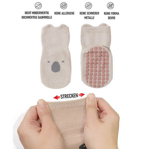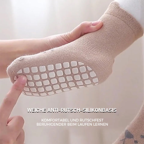 【ANTI-RUTSCH-GRIFFE】 Rutschfeste Kleinkindsocken mit dickeren Griffen an der Unterseite, sie sind aus umweltfreundlichem Ruber gefertigt und unterstützen effizient die aktiven kleinen Jungen und Mädchen, wenn sie auf dem Boden laufen oder krabbeln oder auf der Rutsche oder dem Trampolin spielen.
