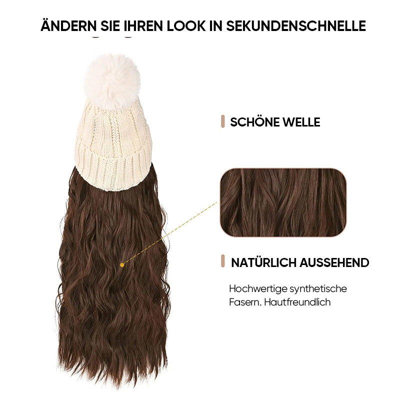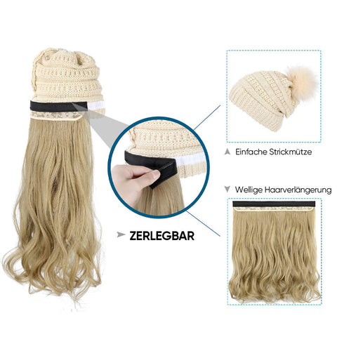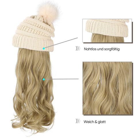 【Material】Die Hutperücke besteht aus hochwertiger Kunstfaser. Die Perücke ist weich und sieht sehr echt aus. Und es hat die perfekte Menge an Wellen. Die Strickmütze ist superweich und bequem.