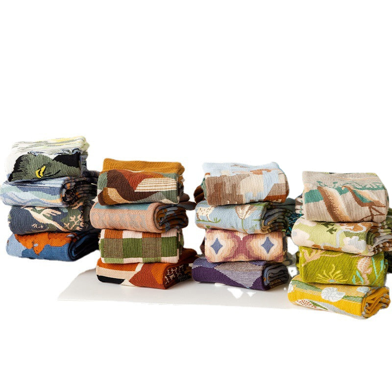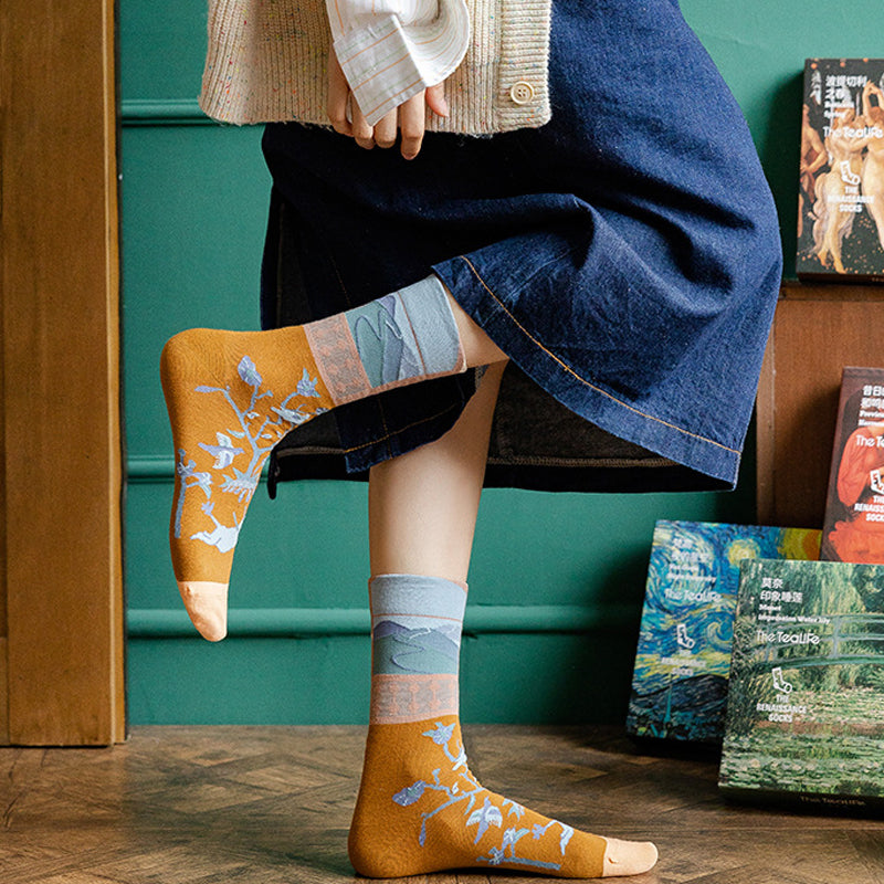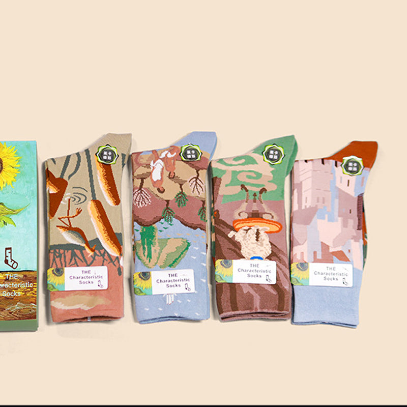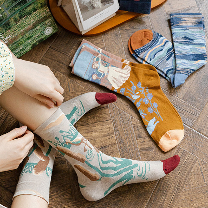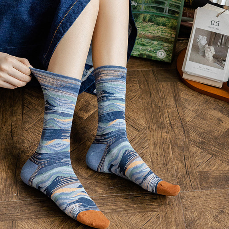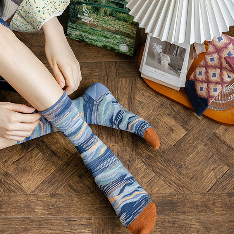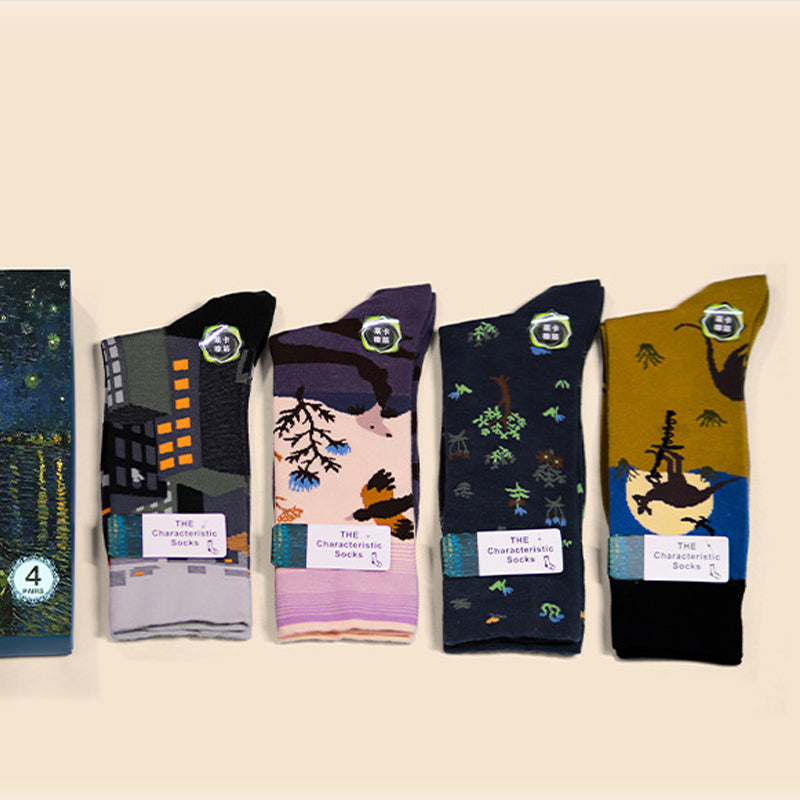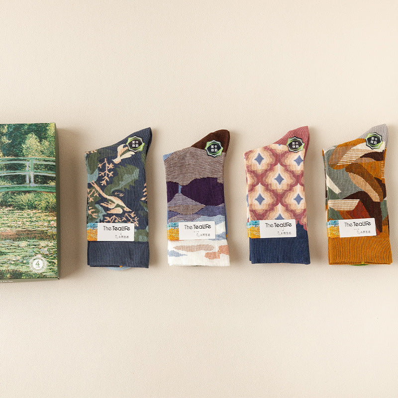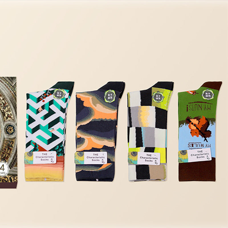 Paket: Langstapelige Ölgemälde Baumwollsocke * 1 Set (4 Paar)