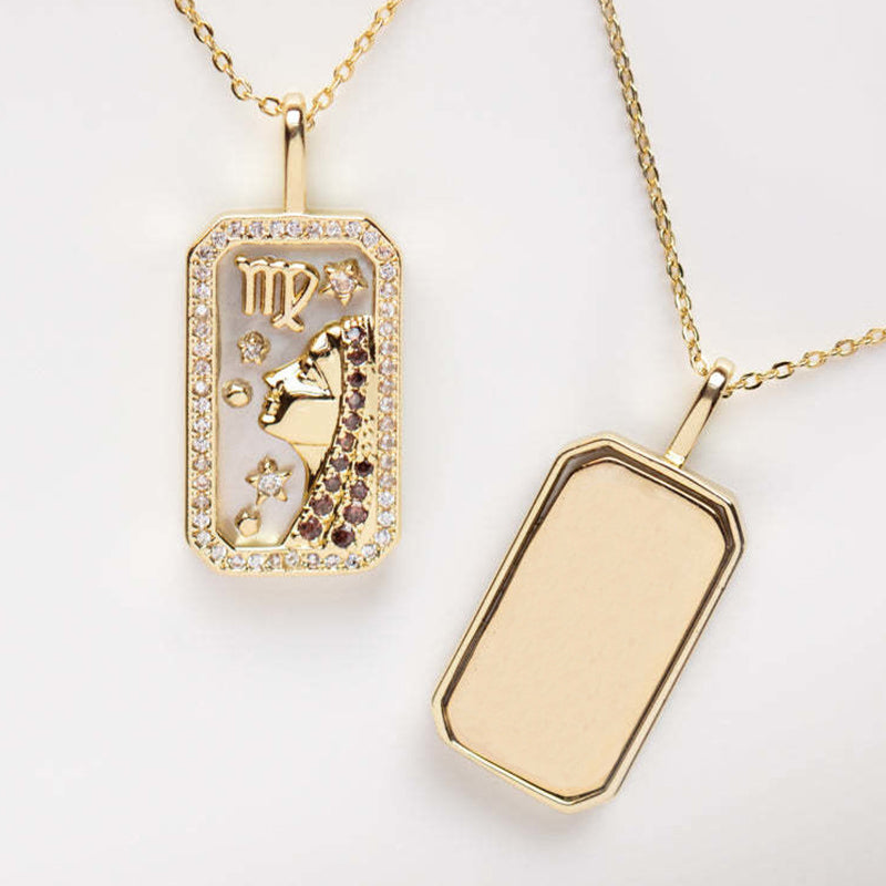 🥂 Unsere exklusiven Sternzeichen-Amulette sind sorgfältig handgeschnitzt mit Perlmutt-Intarsien in einem Pavé-Rahmen mit bunten Edelsteinen, die für jedes Sternzeichen einzigartig sind.