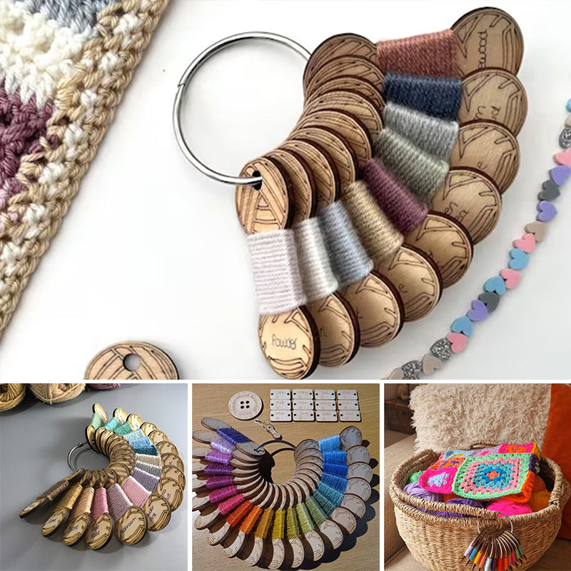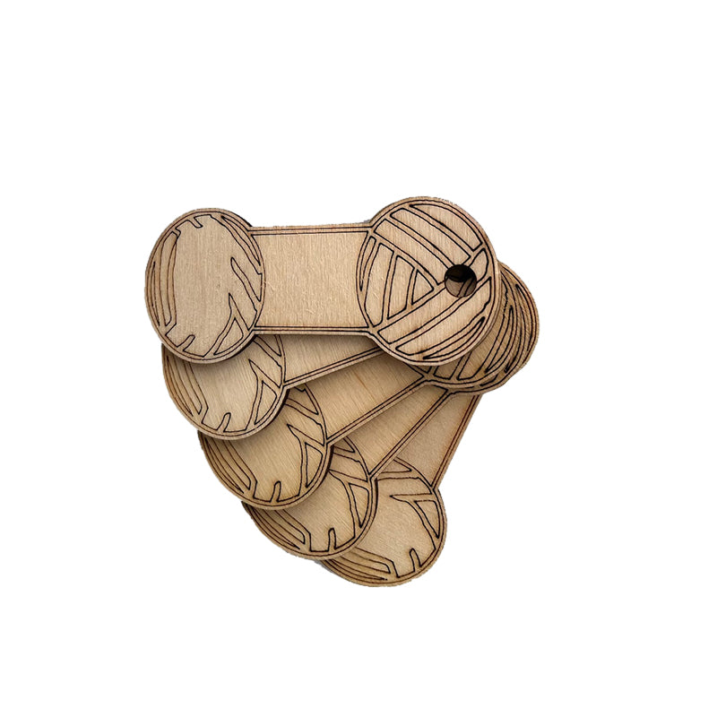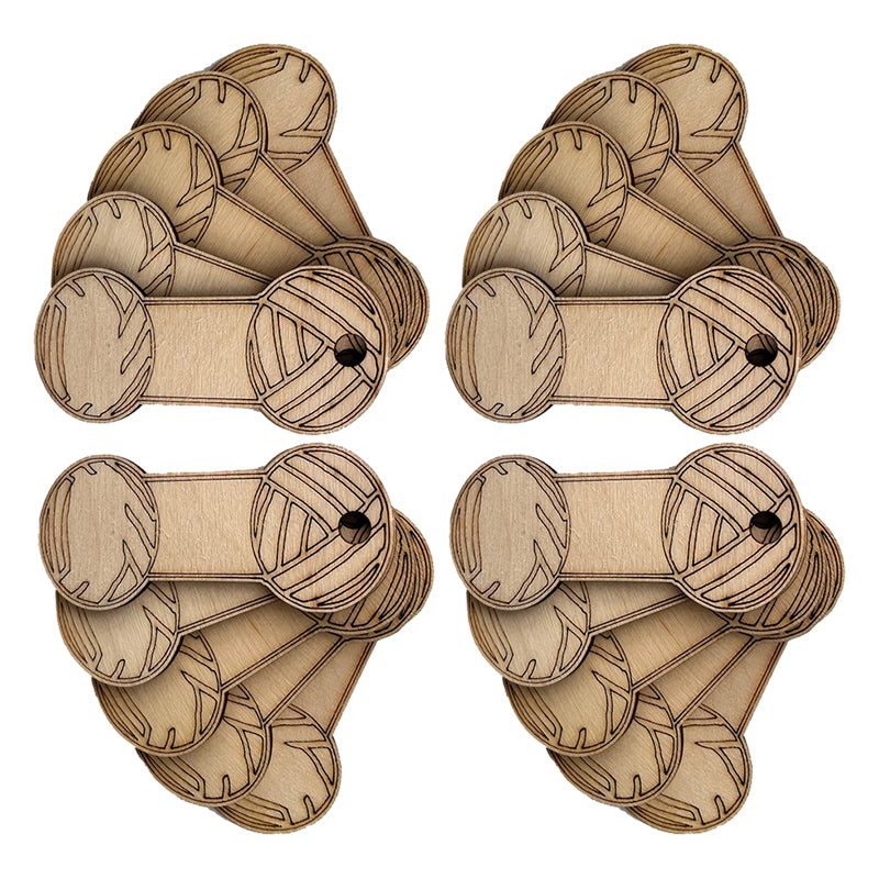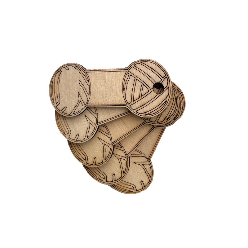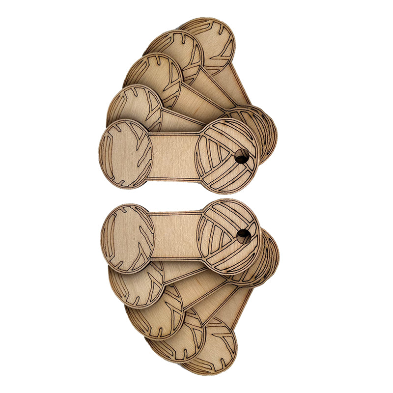 Diese Garnanhänger (oder "Wäscheklammern") sind perfekt, um Ihr Garn zu ordnen! Wickeln Sie sie einfach um das lasergeschnittene Garnknäuel und schreiben Sie den Farbnamen in die Lücke am unteren Ende.