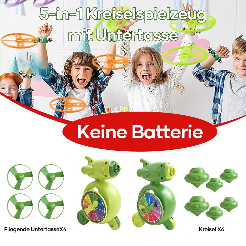 Paket: 1 * 5-in-1 fliegende Scheibe Gyro Spielzeug + 2 * Untertassen + 3 * Kreisel