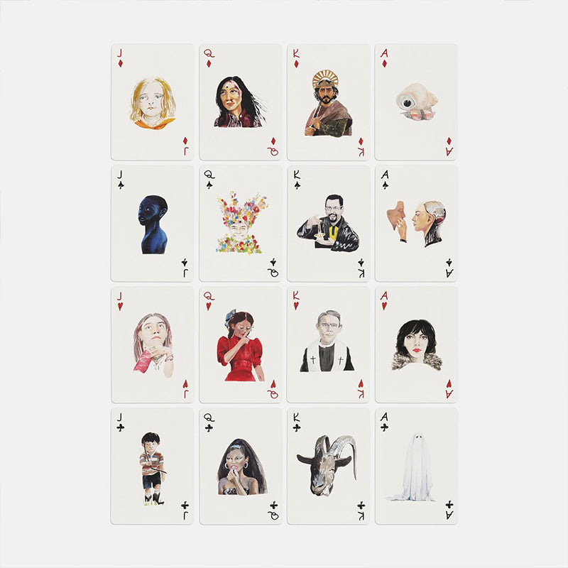 Dazu gehören Howard Ratner (Adam Sandler) aus „Uncut Gems“, Evelyn Quan Wang (Michelle Yeoh) aus „Everything Everywhere All At Once“, Dani (Florence Pugh) aus „Midsommar“, Peter Graham (Alex Wolff) aus „Hereditary“ und viele mehr. Die Spielkarten sind in einer versiegelten, unbeschichteten, mattschwarzen Faltschachtel untergebracht, die auf der Vorderseite ein geprägtes Logo und ein Bild in schwarzer Glanzfolie trägt.