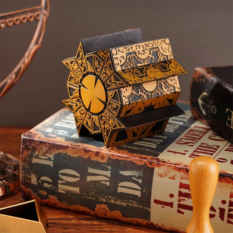 Eingebautes Verschlusssystem: Eine Puzzlebox ist ein mechanisches Gerät, das wie eine Tür zu einer anderen Dimension wirkt. Die Scheibe in der Mitte muss in die gewünschte Position gedreht werden, um das Puzzle zu öffnen.