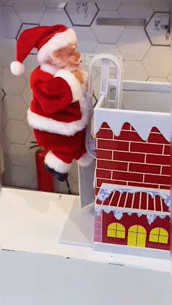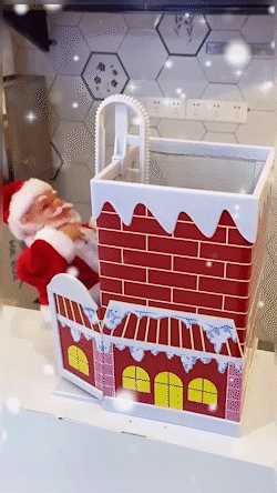 ⭐⭐Der Weihnachtsmann kriecht den Schornstein entlang der Strecke auf und ab. Der Weihnachtsmann bewegt sich mit schaukelnder Hüfte vorwärts, während er Weihnachtsmusik spielt.