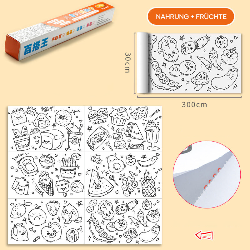 [Sicherheitsmaterial]: Kinder Zeichnung Rolle ist aus Premium-Papier, viele Zeichnung Muster und sicher für die Malerei, Effektiv verbessern Sie Ihre praktischen Fähigkeiten, feine und glatte Oberflächen, bieten eine hervorragende Ressource für Design und künstlerische Arbeit. Während des Malens werden Sie genug Spaß und Entspannung haben. Sie können auch Ihre wunderbare Erfahrung mit Ihrer Familie und Freunden teilen.