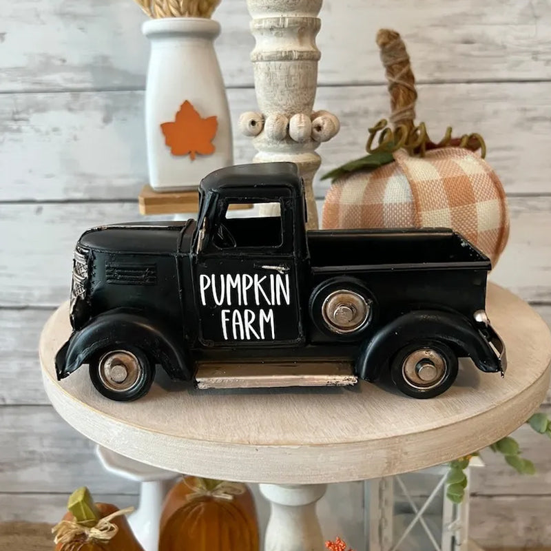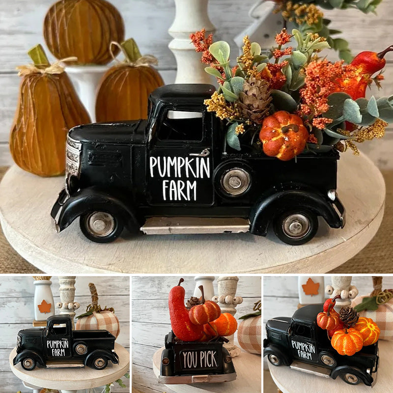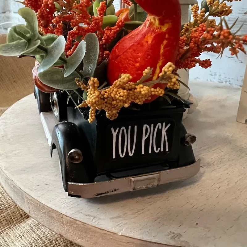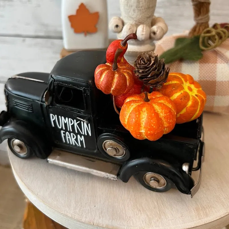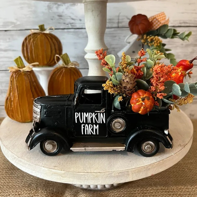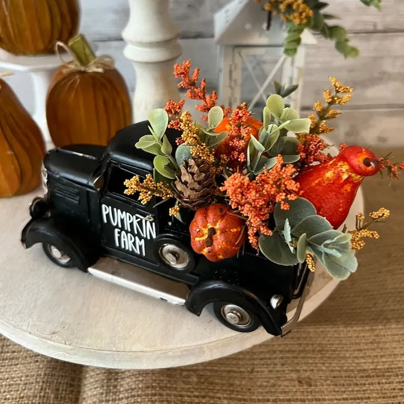 🏕Ein süßer schwarzer Mini-Truck, gefüllt mit Ihren liebsten Blumenkürbissen, der das Herzstück Ihrer herbstlichen Tablettdekoration bildet 🍂