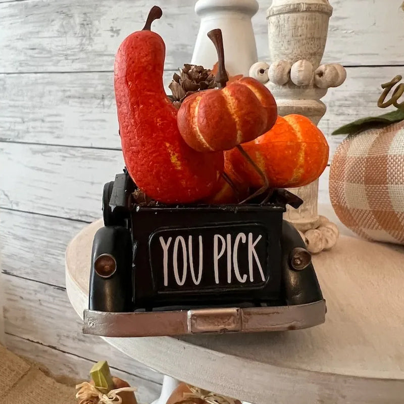 • 💐Dieser entzückende Truck ist mit Kürbissen und Blumen verziert, sodass Sie ihn aus jedem Blickwinkel präsentieren können. Aufkleber auf der Rückseite des Trucks mit der Aufschrift „You Pick“.